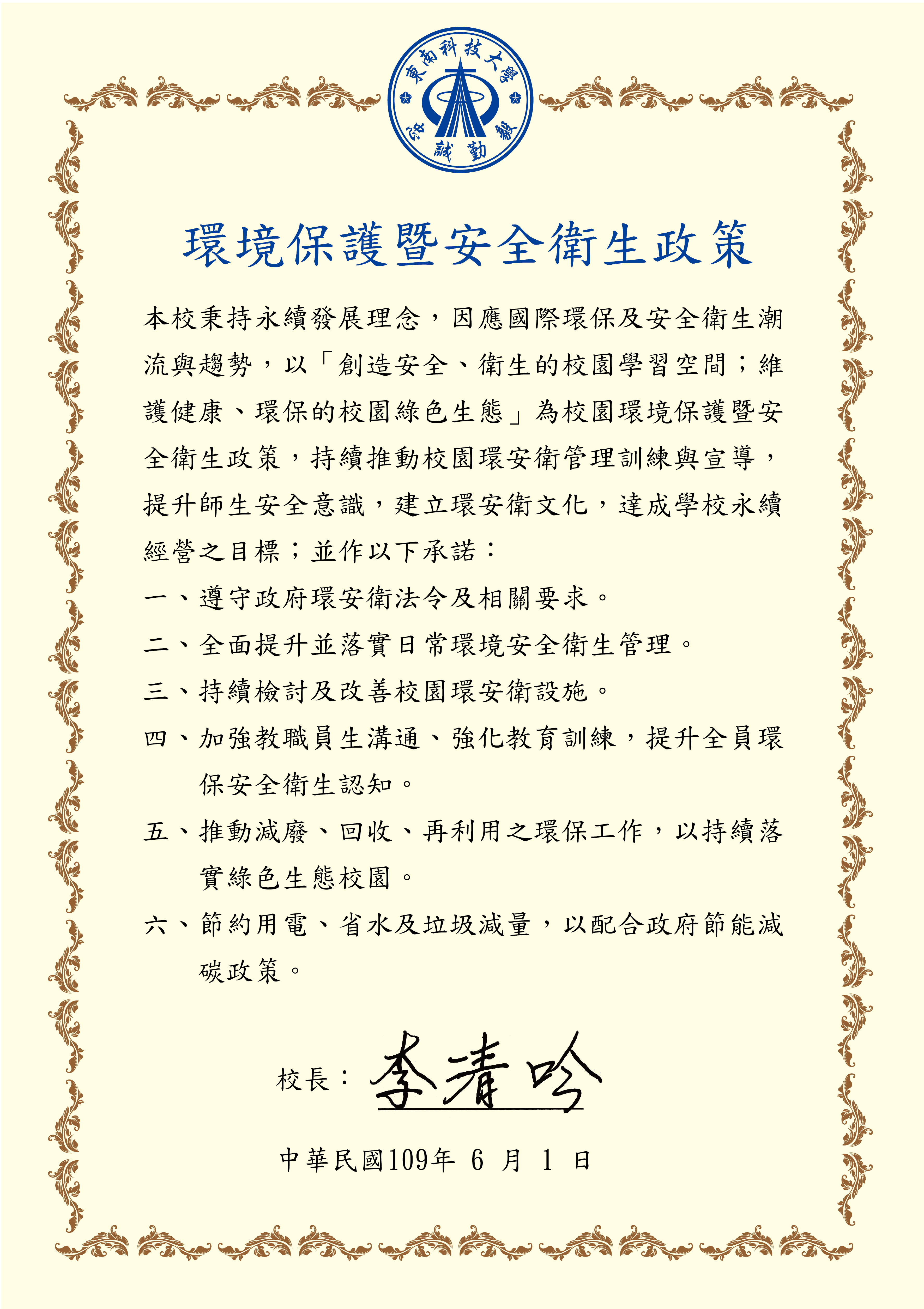 東南科技大學環安衛政策